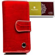 Kompaktowy czerwony portfel damski z lakierowanej skóry naturalnej - Peterson