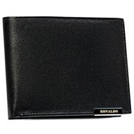 Poziomy, skórzany, czarny portfel męski bez zapięcia zewnętrznego - Ronaldo