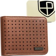 Brązowy portfel męski bez zapięcia z subtelnym, perforowanym zdobieniem - Peterson