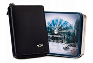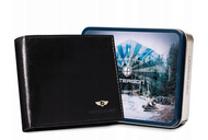Czarny, pionowy portfel męski ze skóry naturalnej — Peterson