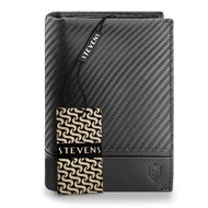 Portfel Męski STEVENS Wytrzymała Powłoka CARBON Skórzany Czarny RFID
