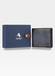 Visconti Portfel Mały Męski Skórzany PM102 Czarny+Niebieski