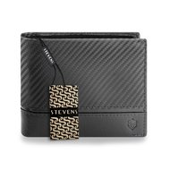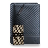 Portfel Męski STEVENS Wytrzymała Powłoka CARBON Skórzany Czarny RFID