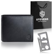 Portfel Męski Skórzany STEVENS Ochrona RFID Czarny PREMIUM na prezent Święta, pod choinkę