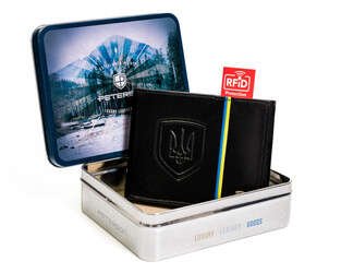 Skórzany portfel męski z godłem i barwami Ukrainy - Peterson