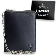 Elegancki Portfel Męski STEVENS Skóra Czarna RFID Łańcuszek Poziomy