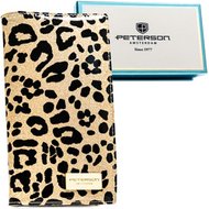 Złoty, pionowy portfel damski ze skóry ekologicznej i naturalnej w cętki - Peterson