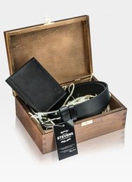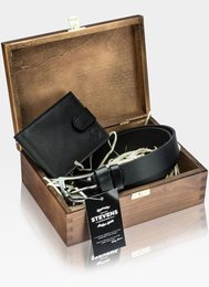 Zestaw Prezentowy STEVENS Portfel i Pasek w drewnianym pudełku na prezent!
