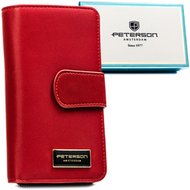 Czerwony portfel damski wykonany ze skóry naturalnej, zamykany na zatrzask - Peterson