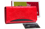 Skórzany damski portfel w zmysłowym czerwonym kolorze z wężową klapą - Peterson