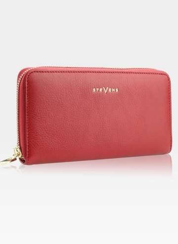 Portfel Damski Skórzany STEVENS Duży Czerwony Piórnik Na Zamek RFID 12 Kart