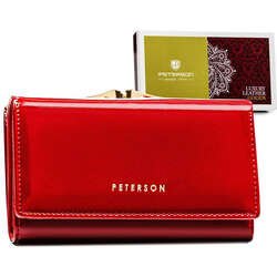 Portfel Damski Skórzany STEVENS Czerwony z Zabezpieczeniem RFID