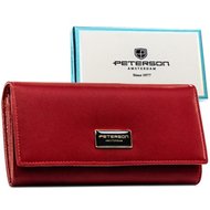 Czerwony portfel damski wykonany ze skóry naturalnej, zamykany na zatrzask - Peterson