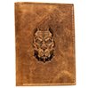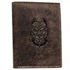 - Portfel wykonany został z naturalnej skóry o stylowym, lekko przecieranym wykończeniu. Portfel z tłoczeniem głowy psa - symbolu odwagi, niezłomności i czujności. Wyposażony w system RFID. Portfel bez zapięcia.