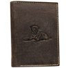 Skórzany portfel męski w kolorze brązowym bez zapięcia z tłoczeniem w kształcie psa