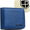 - Pojemny portfel męski w granatowym kolorze zamykany suwakiem. Kompaktowy rozmiar przy zachowaniu dużej pojemności. Ozdobiony nowoczesnym designem z geometrycznym wzorem. Wyposażony w system RFID. Mieści dowód rejestracyjny.