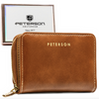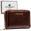 Brązowy portfel damski ze skóry ekologicznej zamykany na suwak i zatrzask - Peterson