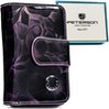 - Fioletowy portfel z połączenia skóry naturalnej i ekologicznej. Posiada 9 przegródek na karty dla idealnej organizacji i 4 miejsca na dokumenty. Wyposażony w system RFID. Portfel zamykany zatrzaskiem i suwakiem. Mieści dowód rejestracyjny.