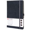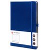 - Granatowy notes zadrukowany w linie. Minimalistyczna, elegancka twarda oprawa sprawia, że doskonale pasuje zarówno do biura, jak i na uczelnię. Wyposażony w gumkę zamykającą, która zabezpiecza notatki przed przypadkowym otwarciem. Format A5.