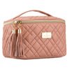 - Kosmetyczka z tkaniny syntetycznej w różowym kolorze. Pikowanie i połyskujące wykończenie sprawiają, że kosmetyczka prezentuje się stylowo. Przestronna komora główna i 5 przegródek pomagają utrzymać perfekcyjny porządek w akcesoriach do makijażu.