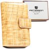 Beżowy portfel damski ze skóry ekologicznej z tłoczeniem na wzór skóry krokodyla, zamykany na zatrzask i suwak - Peterson