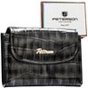 - Dodatkowo znajdziesz w nim pojemną kieszeń na banknoty, która umożliwia wygodne rozmieszczenie gotówki. Takie rozwiązanie sprawia, że portfel łączy elegancki wygląd z pełną funkcjonalnością.