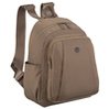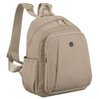 - Mały plecak damski wykonany z poliestru w beżowym kolorze. Jednokomorowy z 7 dodatkowymi kieszonkami. Zamykany suwakiem i zawieszony na regulowanych szelkach.