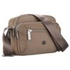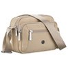 - Niewielka torba damska z poliestru w jasnobeżowym kolorze. Dwukomorowa z 4 dodatkowymi kieszeniami ułatwiającymi organizację przedmiotów. Wyposażona w regulowany pasek. Torebka zamykana na suwak.