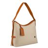 Beżowa torebka damska z poliestru i skóry ekologicznej wyposażona w kieszonkę zewnętrzną - Peterson