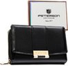 Poziomy portfel damski wykonany ze skóry ekologicznej w czarnym kolorze zamykany na zatrzask - Peterson
