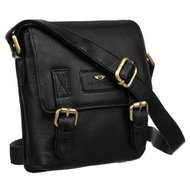 Skórzana, czarna listonoszka męska z klapką, zawieszona na regulowanym pasku - Peterson