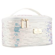 Biała kosmetyczka z tkaniny syntetycznej ozdobiona cekinami, wyposażona w wygodny uchwyt - Peterson