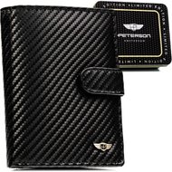 Duży, brązowy, skórzany portfel męski wyposażony w system RFID - Peterson