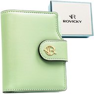 Beżowy portfel damski ze skóry ekologicznej zamykany na zatrzask i suwak - Rovicky