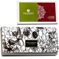Poziomy, duży portfel damski w kwiatowy wzór z wewnętrzną kieszonką na suwak - Peterson