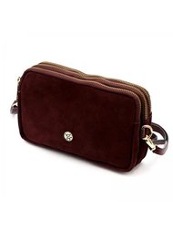 Bordowa listonoszka damska z poliestru i skóry ekologicznej zamykana suwakiem - Peterson