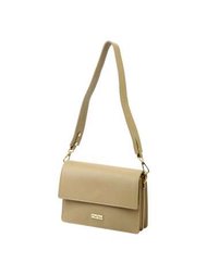 Torebka Skórzana MiaMore 01-054 DOLLARO Ciemny Beż Listonoszka Złote Okucia
