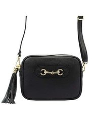 Torebka Damska BRICIOLE 4151 Listonoszka Eko-Skóra Czarna Złote Okucia Regulowany Pasek