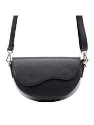 Torebka Skórzana Luka 20-063 DOLLARO Czarna Listonoszka Naturalna Ze Złotymi Okuciami