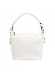 Torebka Damska Skórzana Patrizia Elegancki Worek Biały ze Złotymi Okuciami