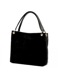 Jednokomorowa, czarna shopperka damska zamykana suwakiem - Peterson