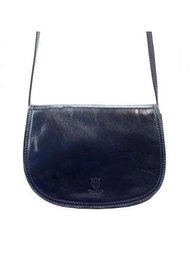 Torebka Skórzana Florence 5512 Listonoszka Granatowa Złote Okucia Naturalna Skóra