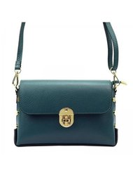 Torebka Damska Luka Dollaro Skórzana Listonoszka Ciemnozielona Ze Złotymi Zdobieniami